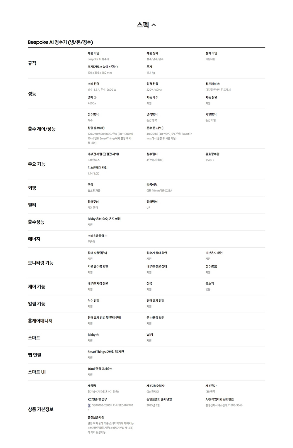 Bespoke AI 정수기 (냉/온/정수) RWP70F15ANC