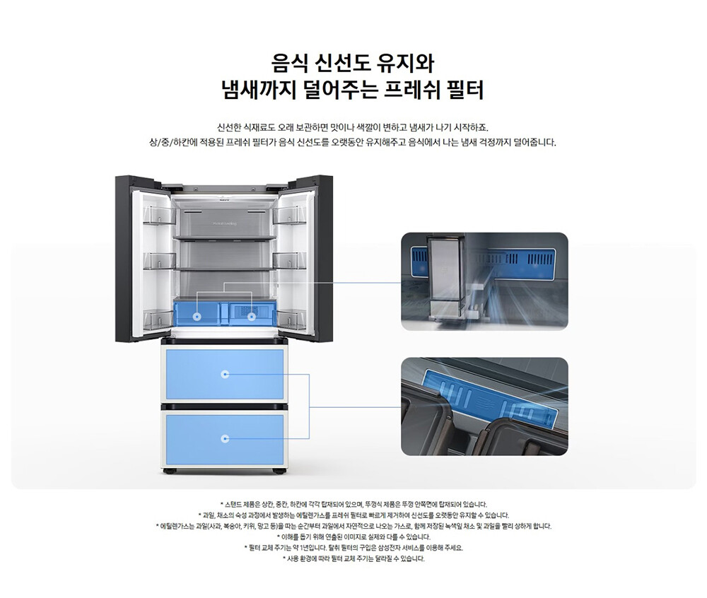 Bespoke AI 김치플러스 4도어 583L (냄새케어 메탈쿨링 김치통) RK80F58B1A