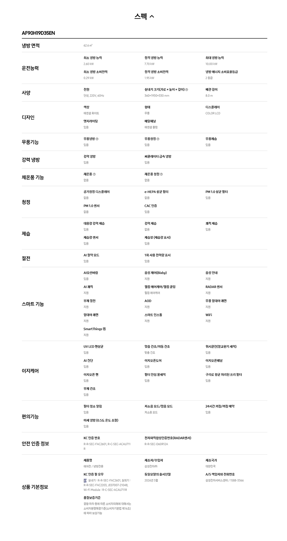 Bespoke AI 무풍콤보 갤러리 프로 청정 62.6/18.7㎡ AF90H19D35ERT