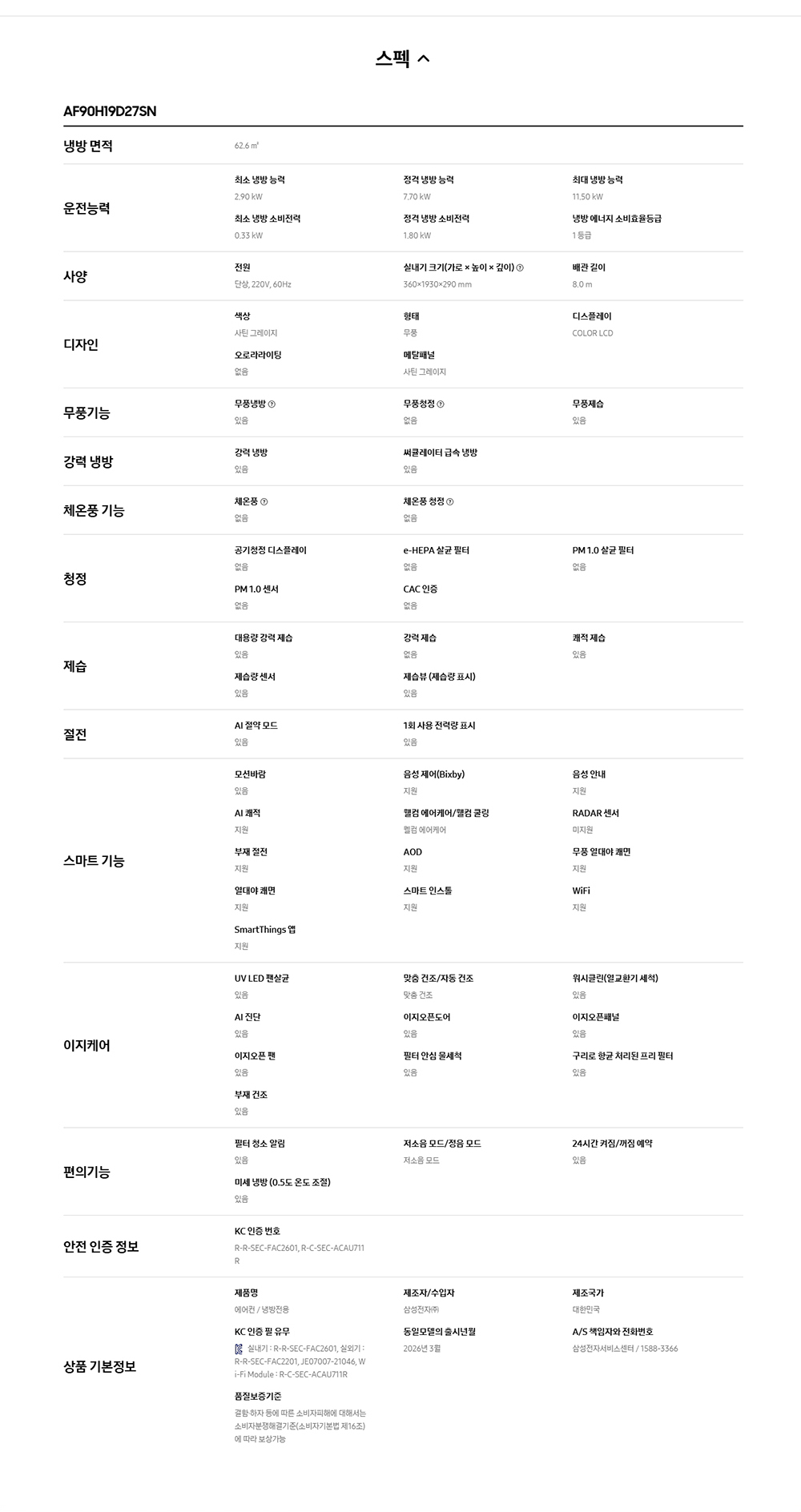 Bespoke AI 무풍콤보 갤러리 프로 62.6㎡ AF90H19D27ST
