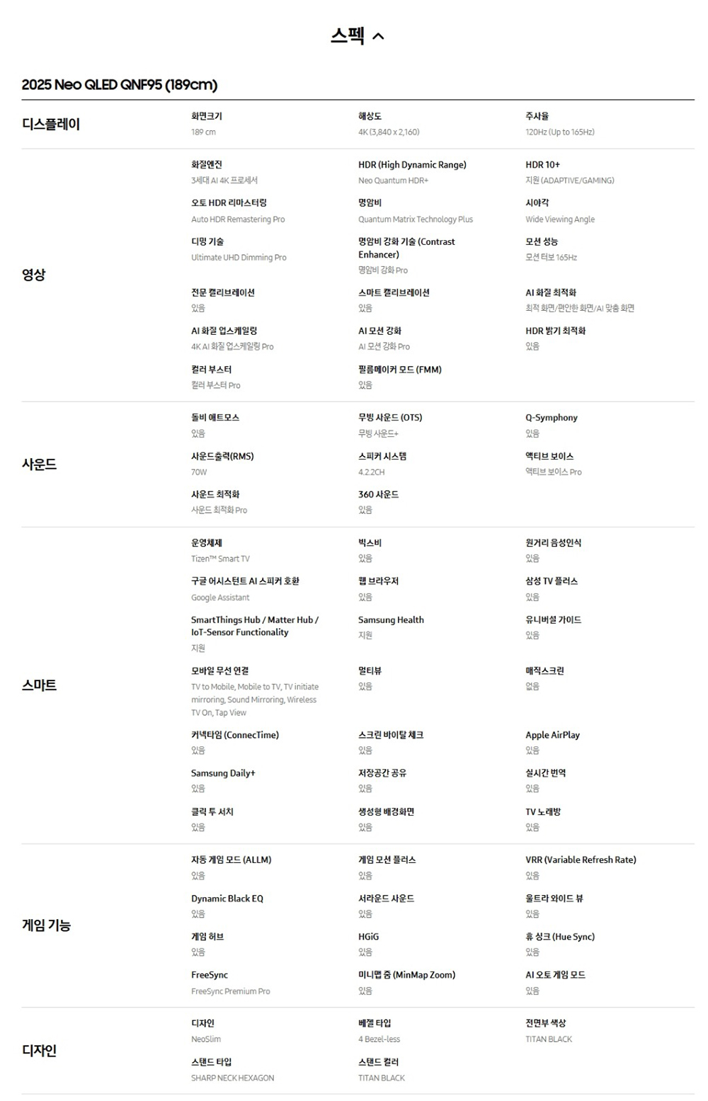 삼성TV 2025 Neo QLED QNF95 (189cm) KQ75QNF95AFXKR 삼성물류 직배송 추가할인 별도문의