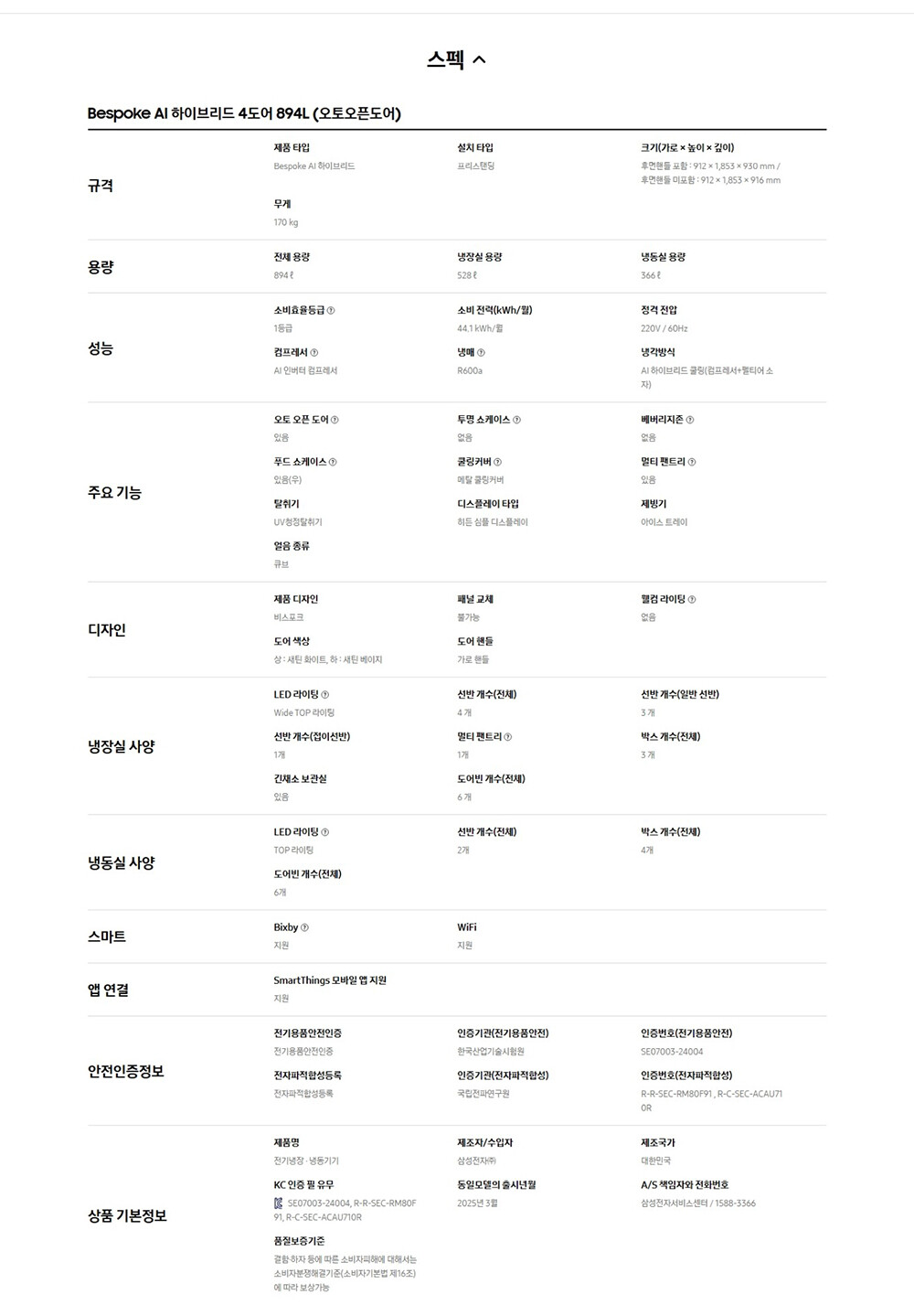 삼성 Bespoke AI 하이브리드 4도어 894L (오토오픈도어) 새틴 화이트 + 새틴 베이지 RM80F91M1XJ 삼성물류 직배송 (추가할인문의)