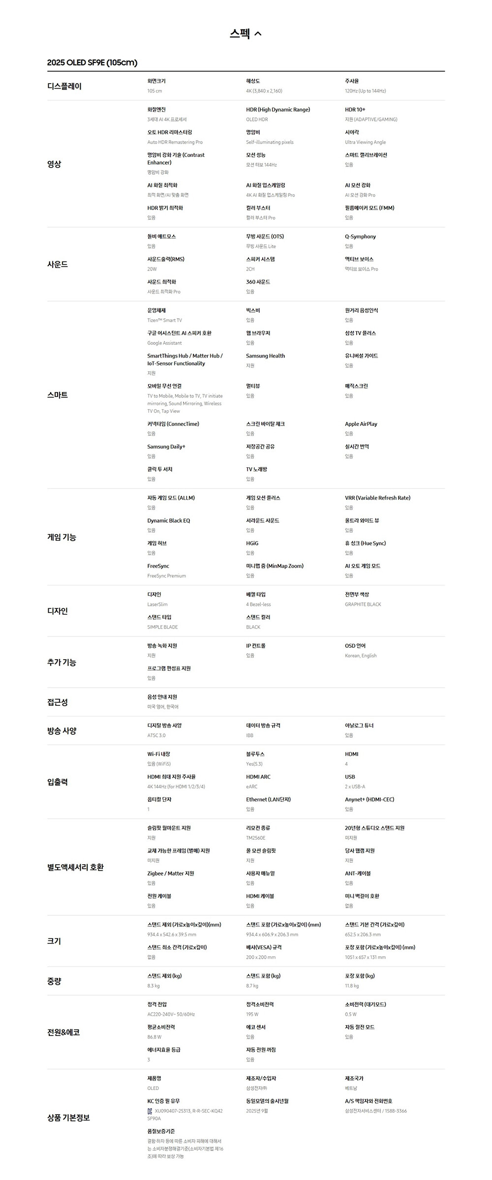 2025 OLED SF9E (105cm) KQ42SF9EAEXKR