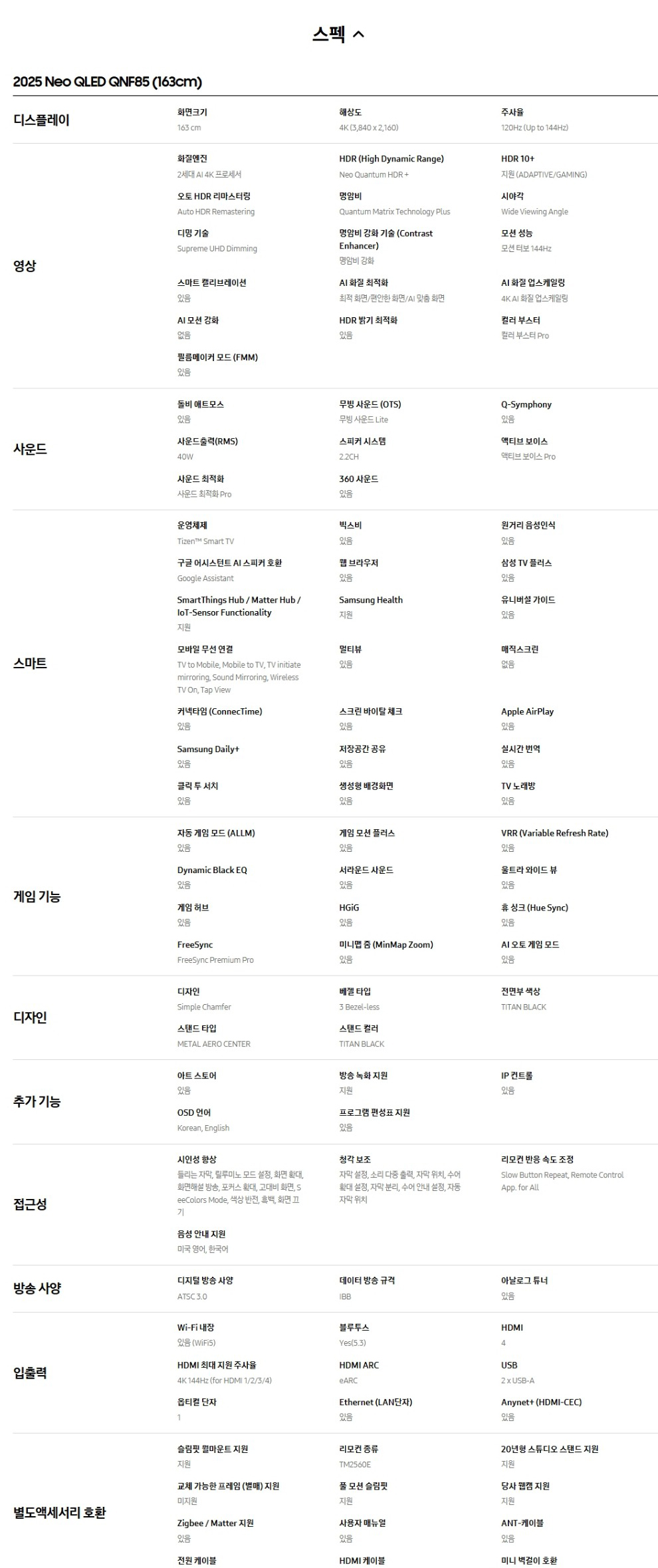 삼성tv 2025 Neo QLED QNF85 (163cm) KQ65QNF85AFXKR