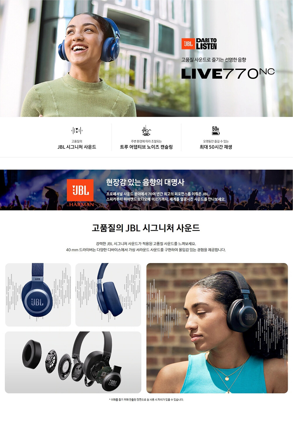 JBL LIVE 770NC 무선 오버이어 헤드폰 JBLLIVE770NCWHT