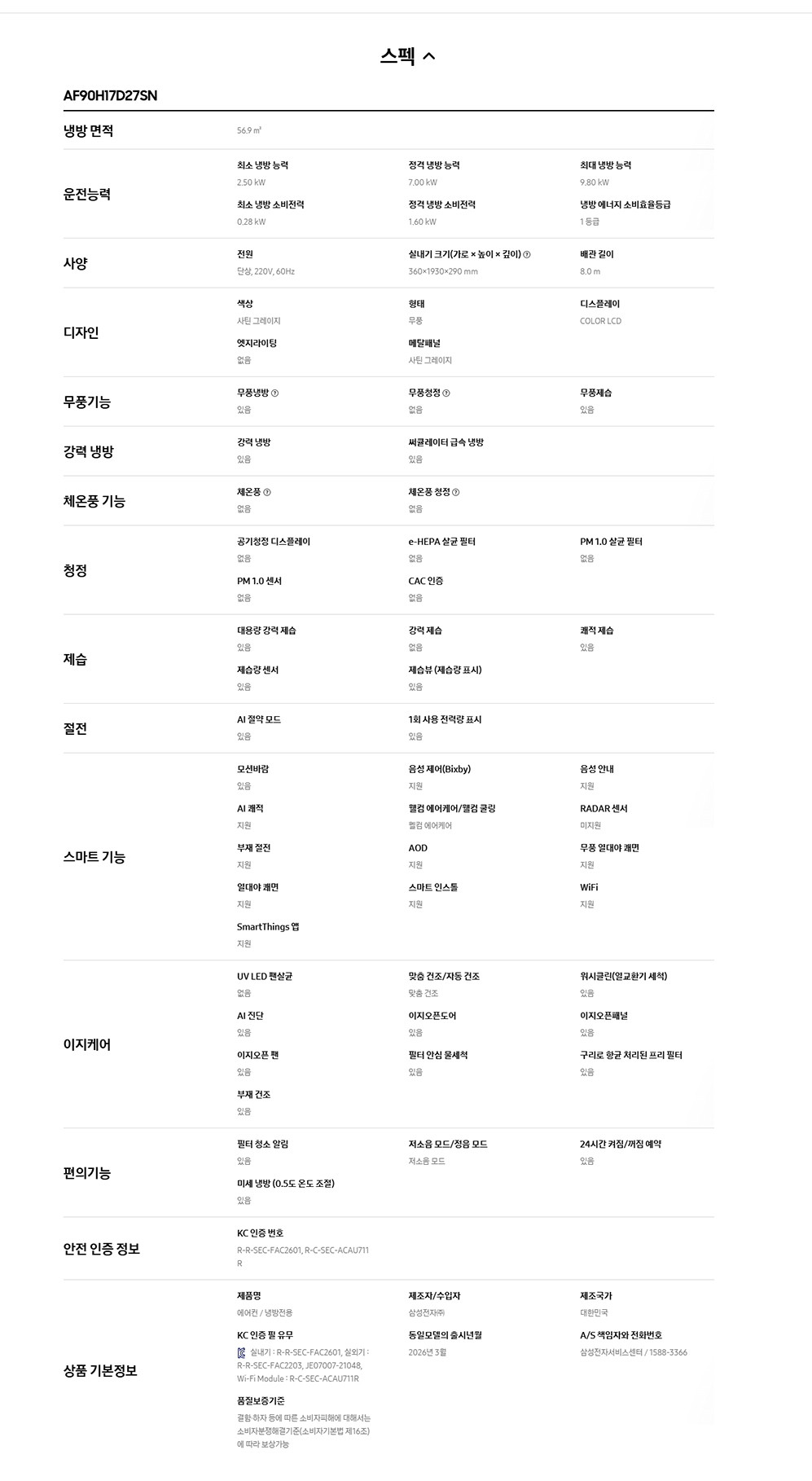 Bespoke AI 무풍콤보 갤러리 프로 56.9㎡ AF90H17D27ST