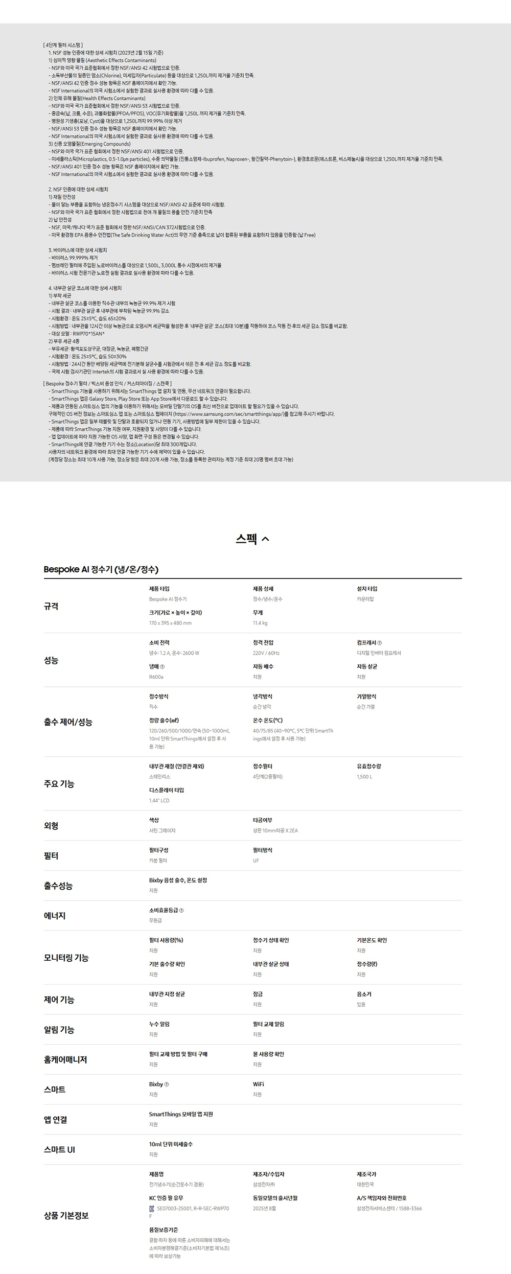 삼성 Bespoke AI 정수기 (냉/온/정수) RWP70F15ANW