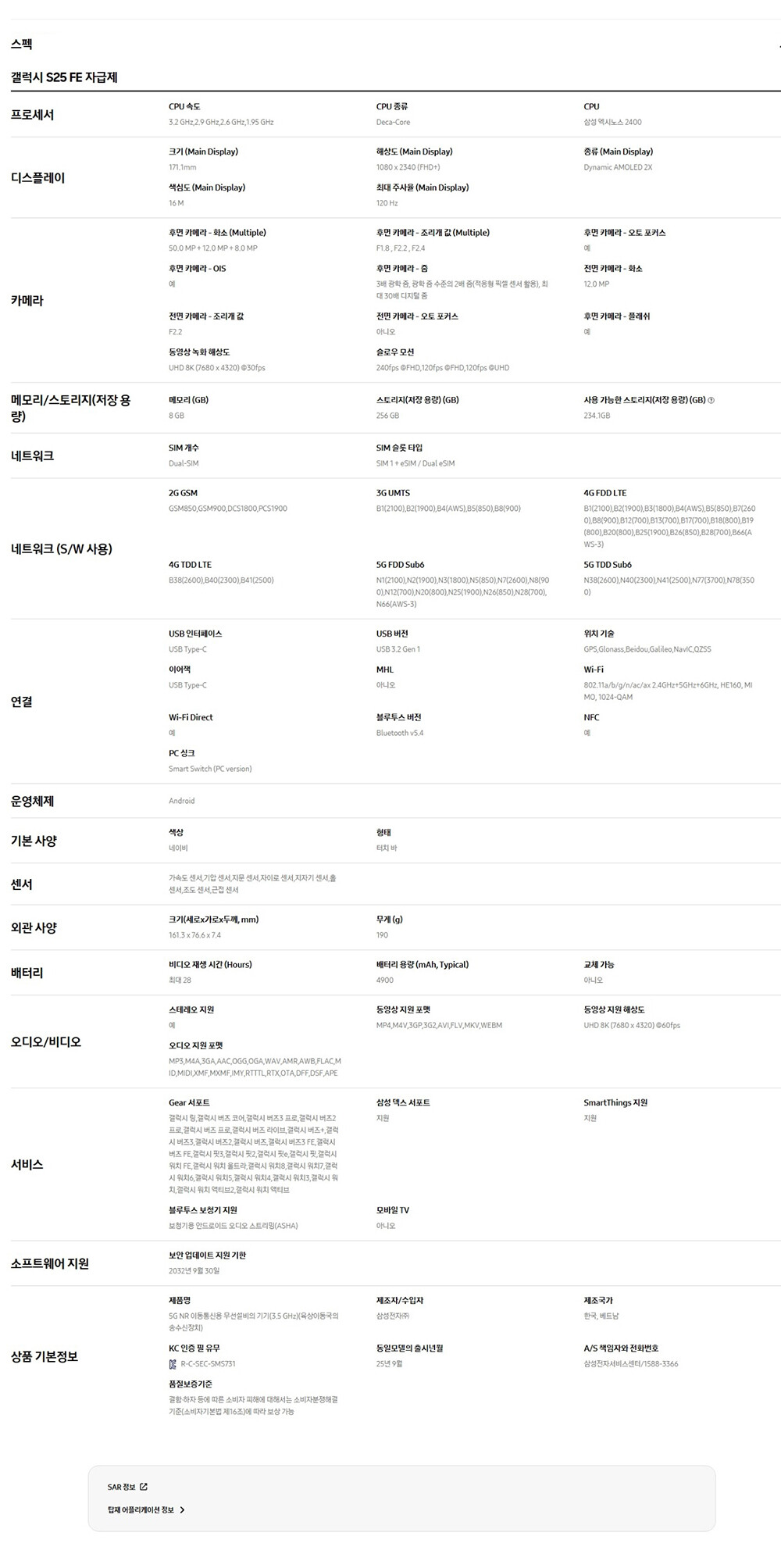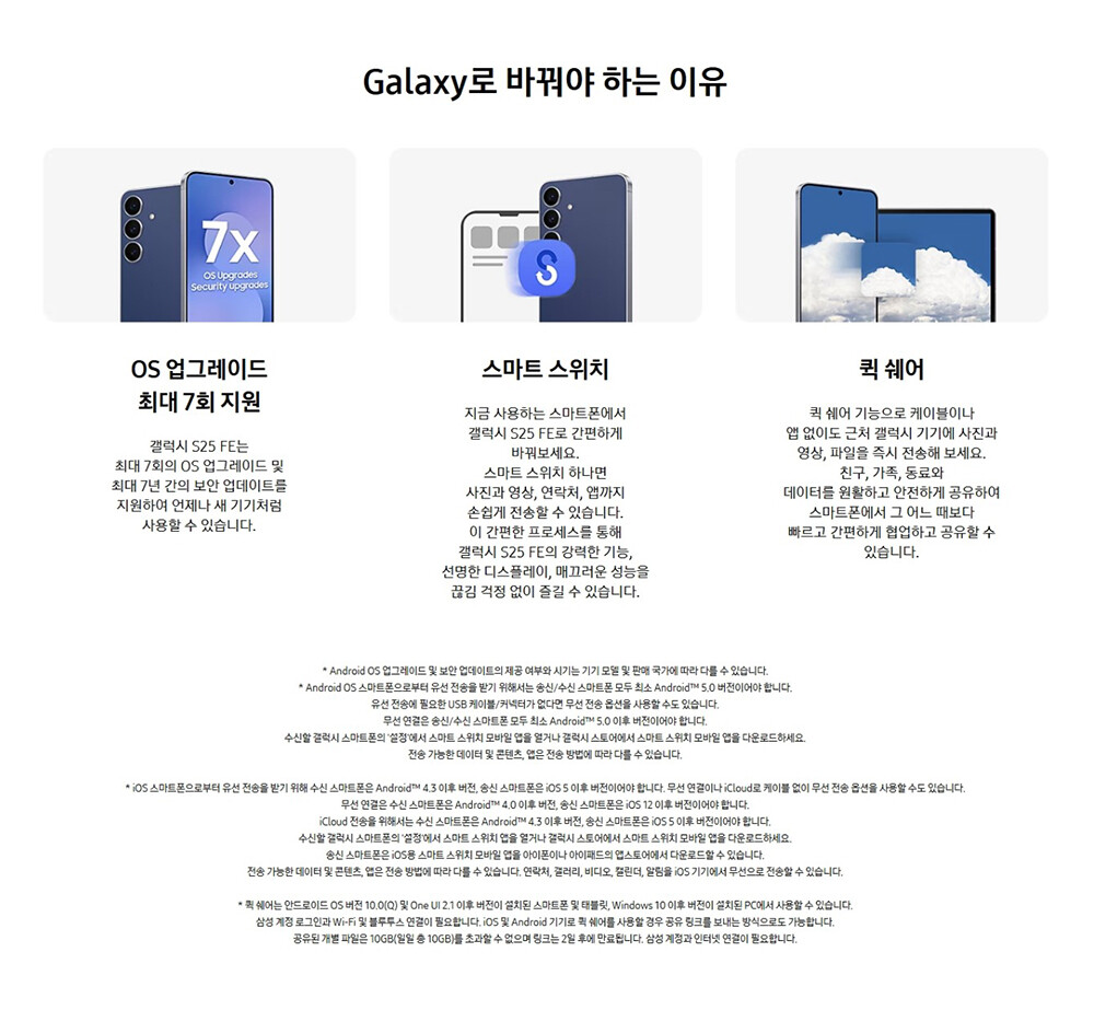 갤럭시 S25 FE 자급제 SM-S731NDBWKOO 256GB